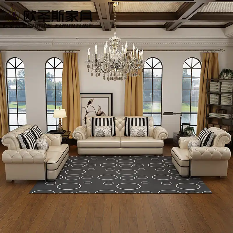 China Modern Cream Genuine Leather Sofa Set Fancy Living Room