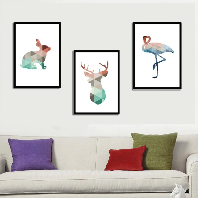 Geometric Deer Swan Rabbit Canvas Painting Colorful Animals A4 No